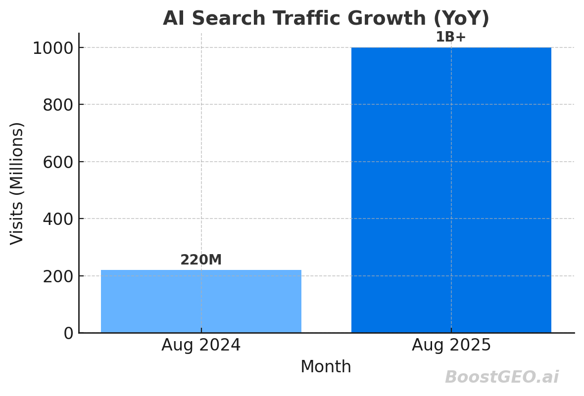 August 2025 vs. August 2024: AI-driven traffic reportedly grew by approximately 357%, surpassing 1 billion visits in August 2025.